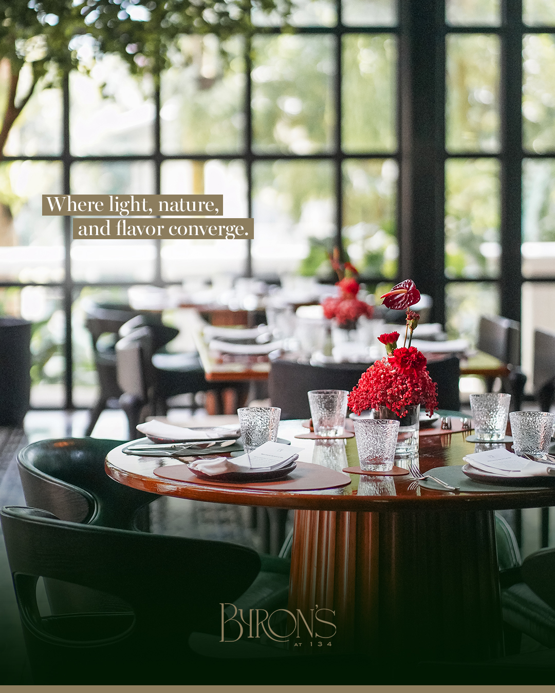 Inside its stunning glass-walled haven, Byron’s at 134 creates an atmosphere of quiet sophistication. Guests are invited to indulge in an experience that celebrates both the warmth of Filipino hospitality and the precision of old-world technique.IMAGE from Byron’s at 134’s Facebook page